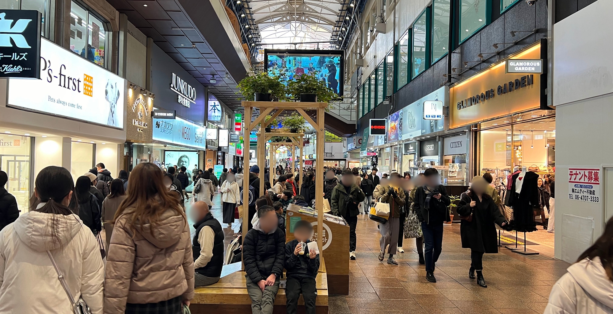 繁華街・なんばの駅前を