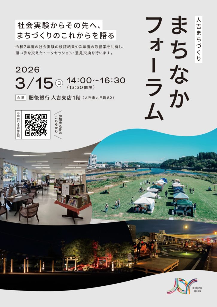 令和7年度、熊本県人吉市では、まちづくり社会実験「HITONOWA ACTION(ヒトノワ・アクション)が約3か月にわたり実施されました。